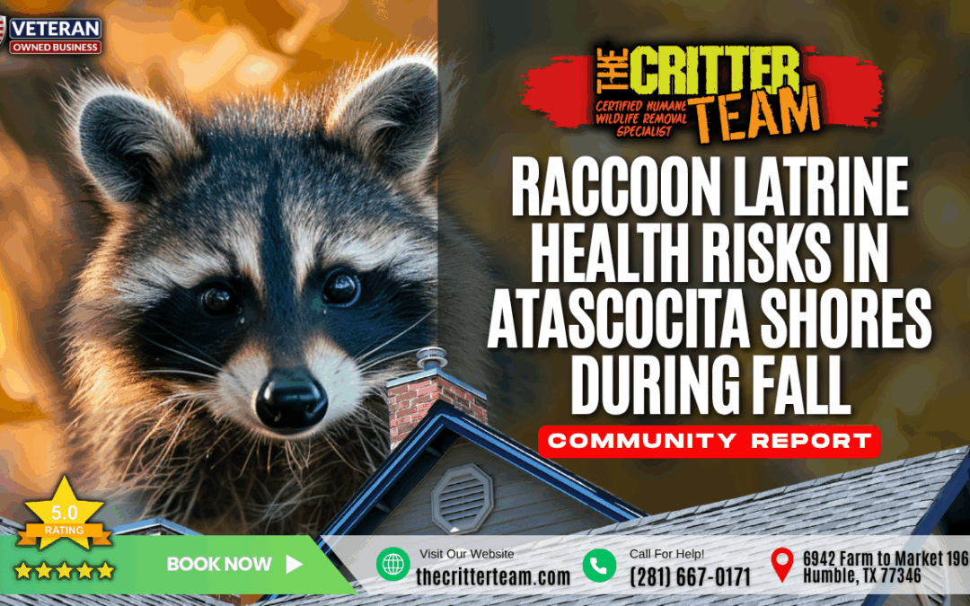- Raccoon latrines in Atascocita Shores pose health risks due to parasites like Baylisascaris procyonis.